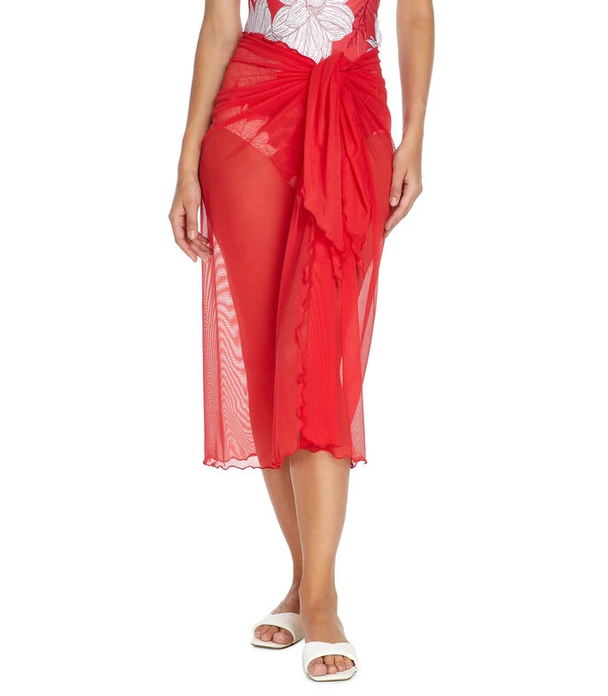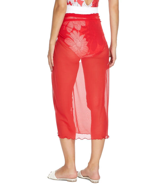 Pareo Barocco Berilo en tejido de punto semitransparente con cinta para anudar en costado.