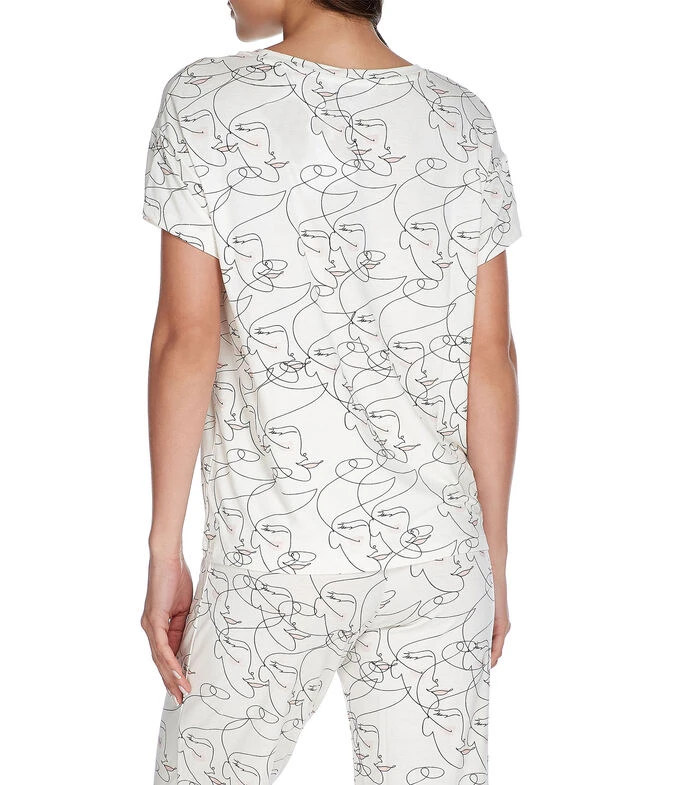 Playera pijama UNWIND by Epsilon de corte recto en tejido de punto con estampados de rostros femeninos.