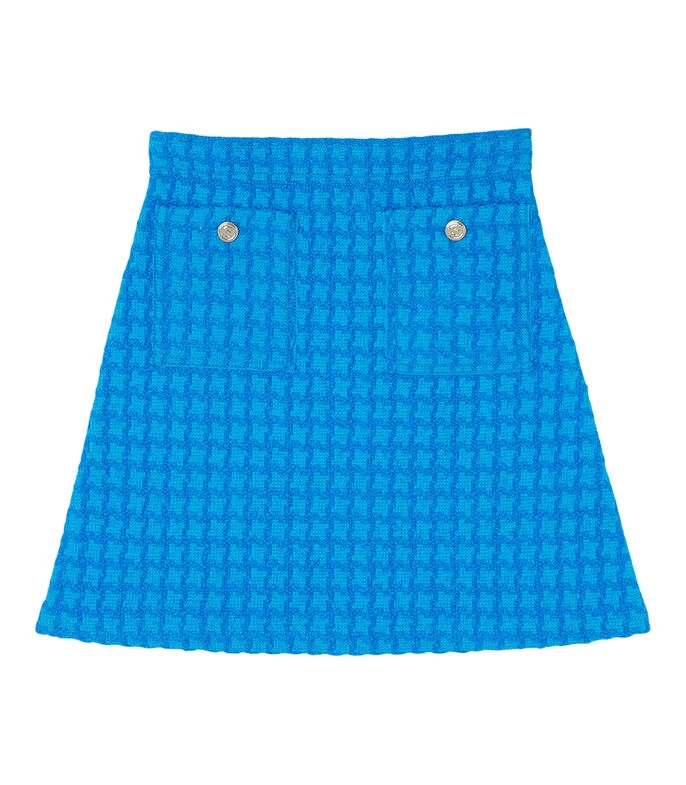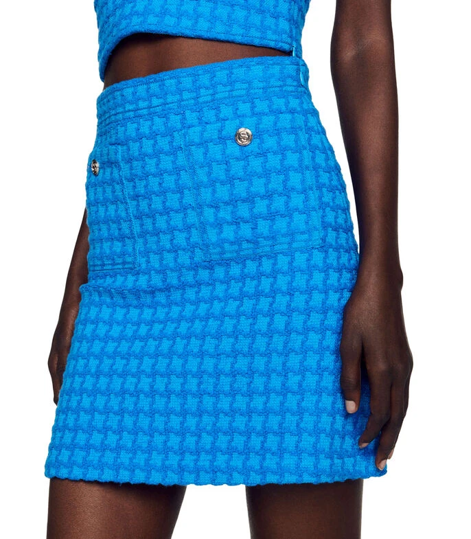 Falda Midi Sandro de corte evasé con diseño de tweed en cuerpo, botones metalizados y bolsillos al frente.