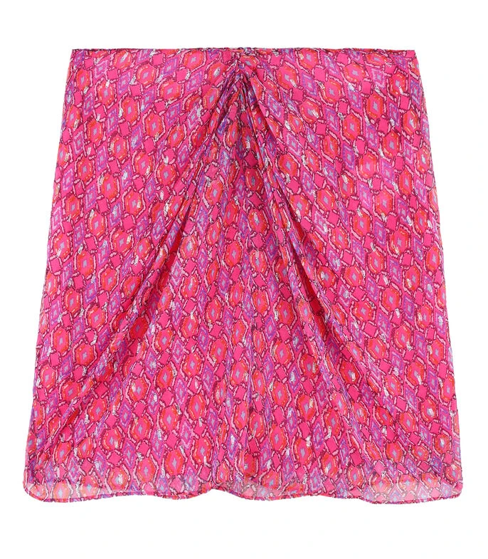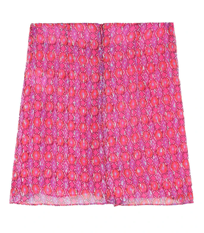 Falda Scalpers corta de corte recto en tejido de punto con multidiseño en mosaico y acabado plisado en la cintura.
