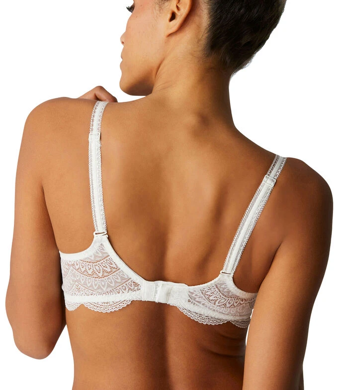 Brasier de encaje Simone Pérèle con varilla, copa suave, diseño floral, tirantes delgados ajustables y broche en espalda.