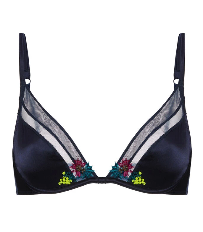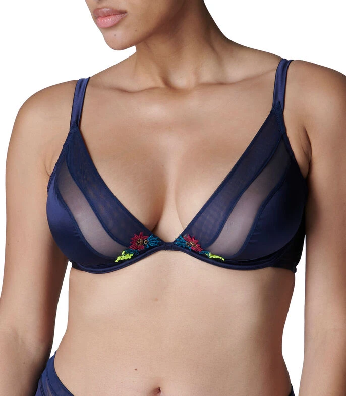 Brasier plunge Simone Pérèle en tejido de punto con detalles de transparencia, bordado decorativo al frente y tirantes ajustables.