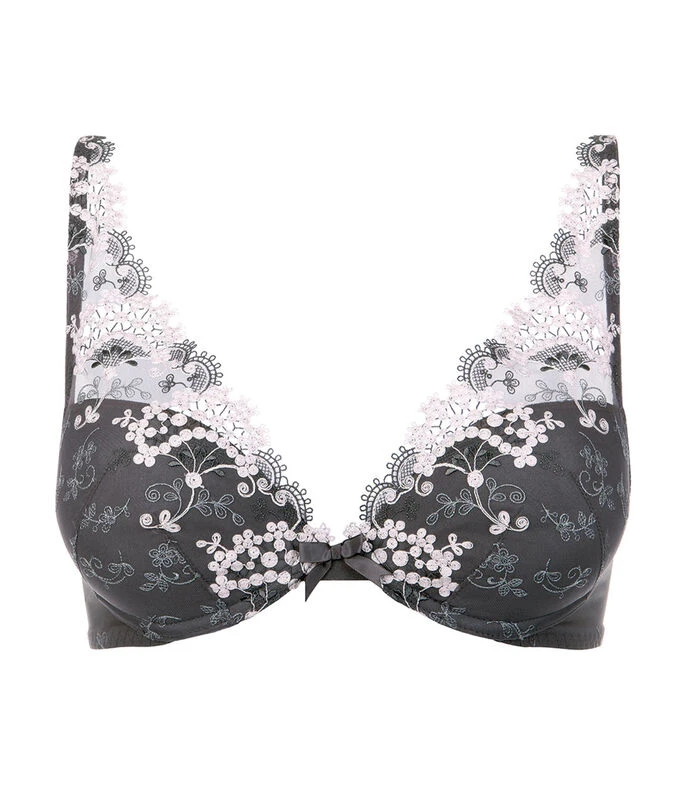 Brasier push up Simone Pérèle en tejido de punto con borde superior de encaje, tirantes delgados y ganchos en espalda.