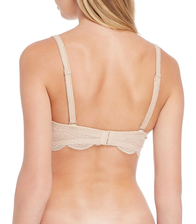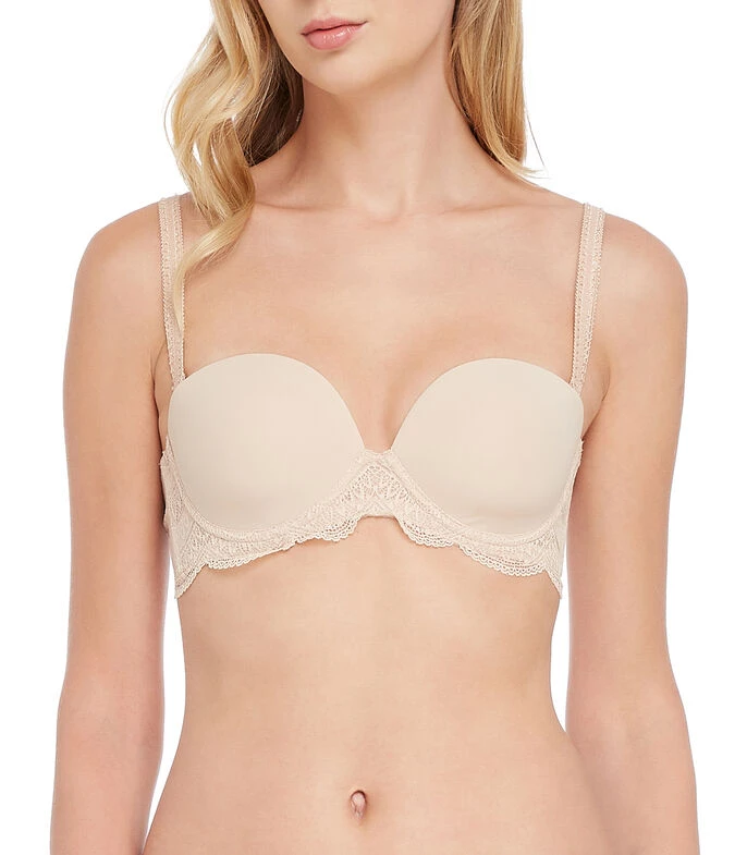 Brasier Simone Pérèle strapless en tejido plano con encaje, copa preformada, tirantes desmontables y broche en parte posterior.