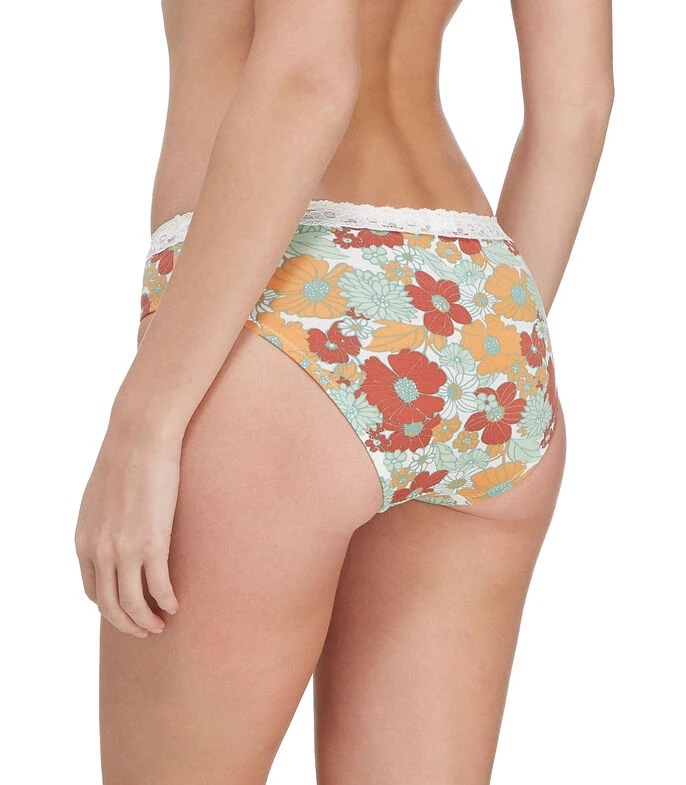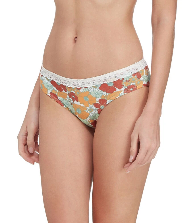 Bikini Skiny en tejido de punto con diseño de flores en mosaico, acabado de encaje en pretina elástica y costuras a tono.