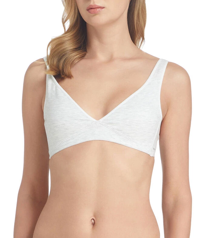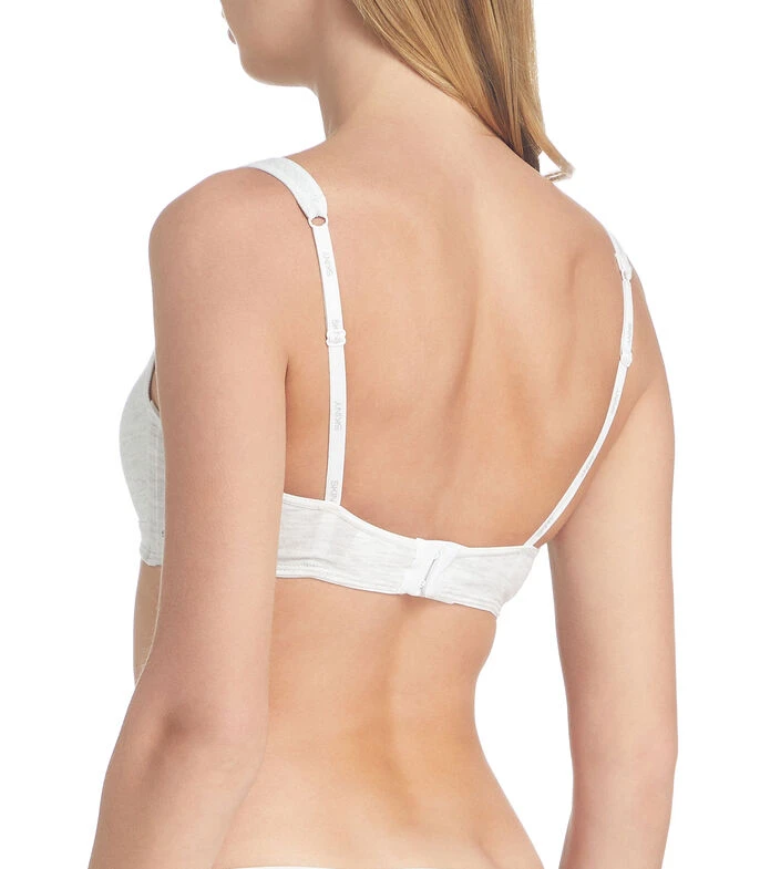Bralette Skiny en tejido de punto jaspeado, pretina elástica en borde inferior, tirantes ajustables y broche en parte posterior. Una prenda que resaltará la figura femenina.