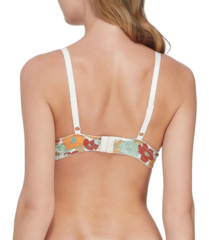Brasier Skiny en tejido de punto con diseño de flores en mosaico, tirantes delgados, espalda clásica, broche en parte posterior y varilla integrada.