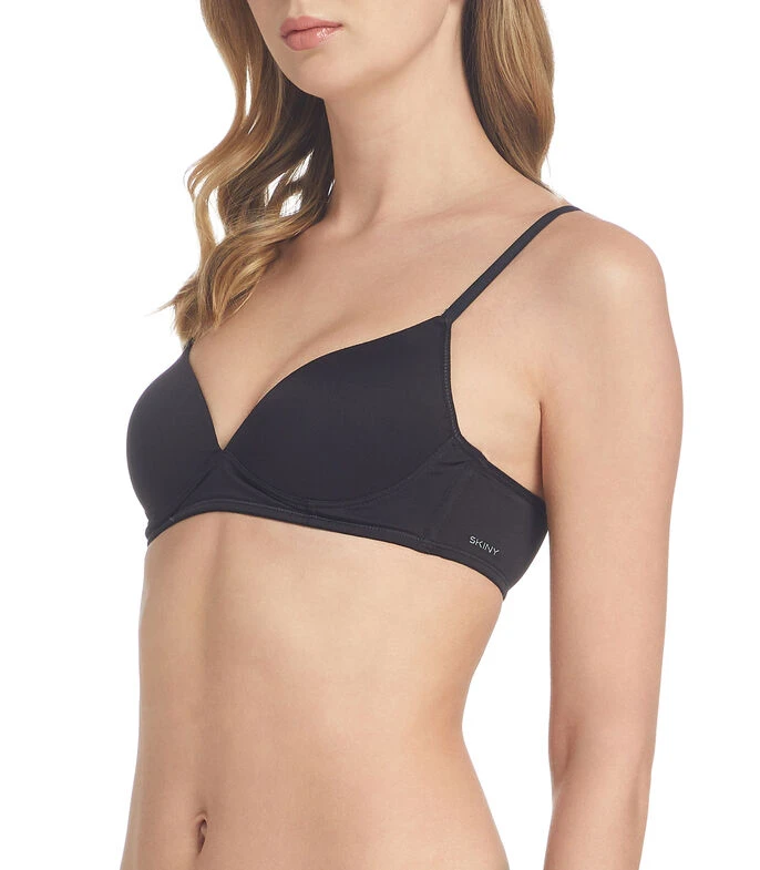 Brasier Skiny en tejido plano, copa sin varilla, tirantes ajustables y broche en parte posterior.