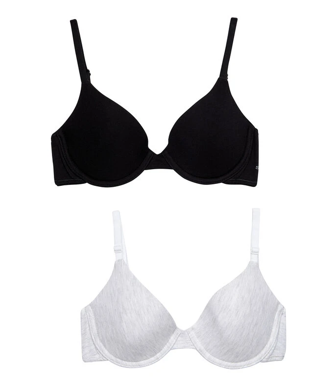 Set de brasieres con varilla Skiny en tejido de punto, copa preformada, tirantes delgados ajustables y broche en parte posterior. Diseño: jaspeado, sólido.
