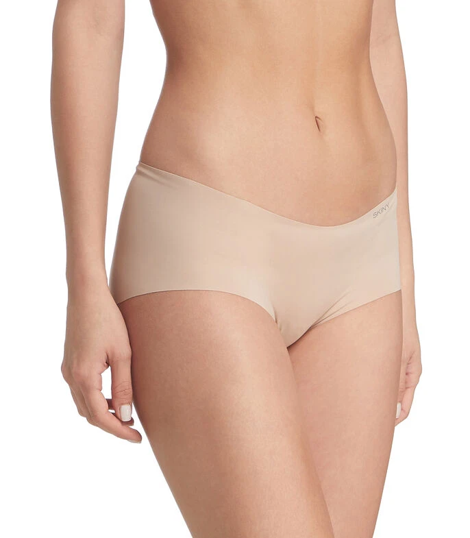 Set Skiny de bikinis tipo hípster en tejido plano, costuras ocultas y nombre de la marca en costado a contraste. Tres diferentes formas, para sentirte cómoda durante el día.