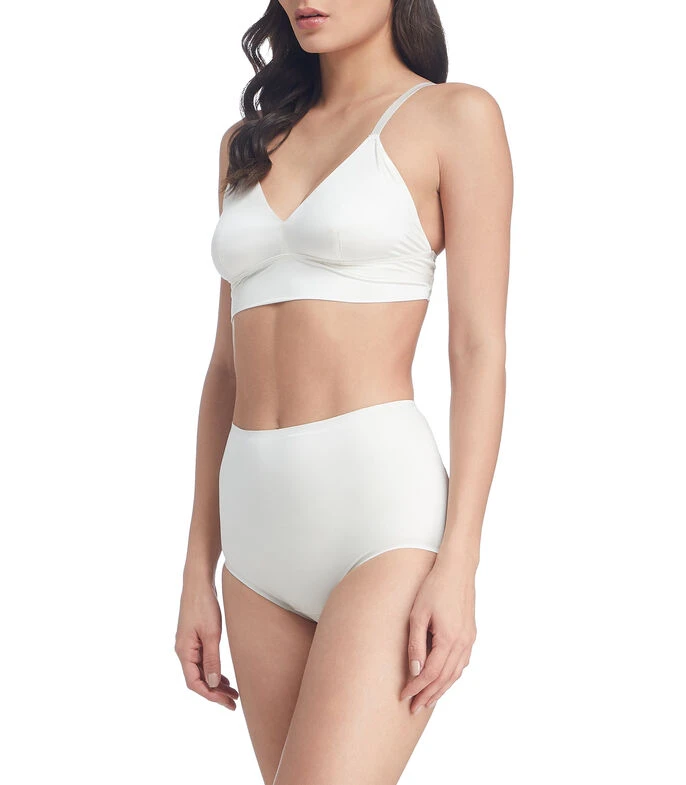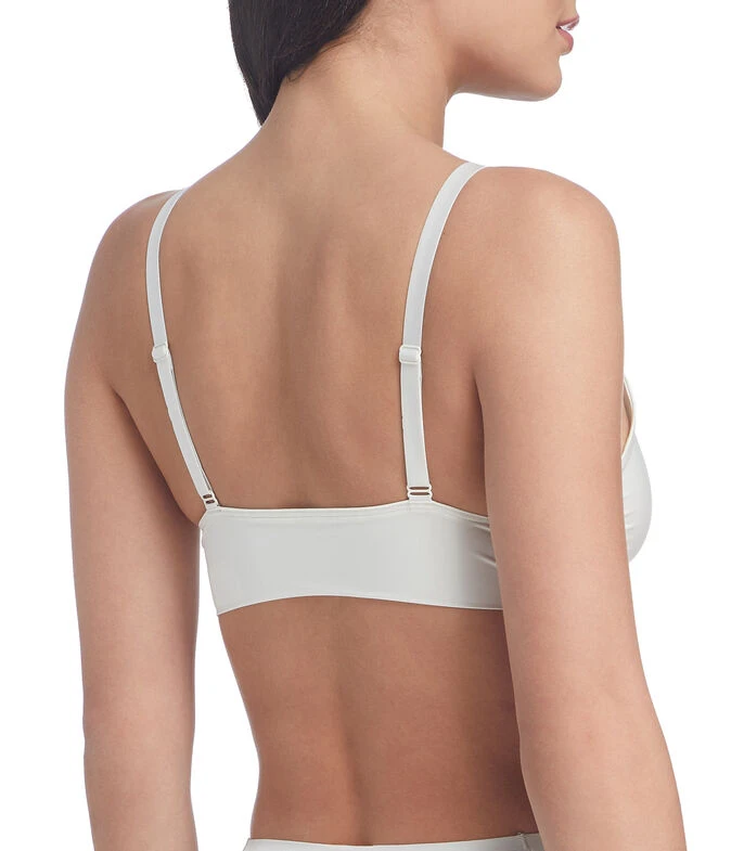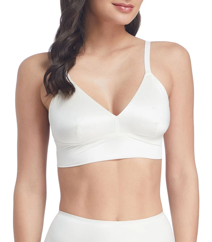 Bralette Spanx en tejido de punto satinado, copa triangular, tirantes delgados y ajustables.