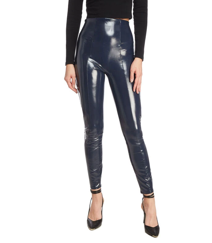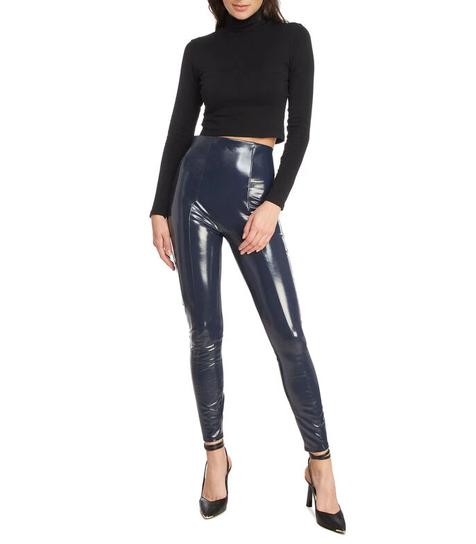 Leggings Spanx en tejido plano con acabado plastificado, cintura ancha y costuras a tono.