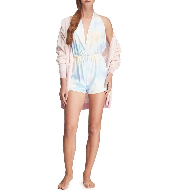 Suéter pijama UNWIND by Epsilon abierto de corte regular en tejido de punto con diseño en mosaico, manga larga y bordes canalé.