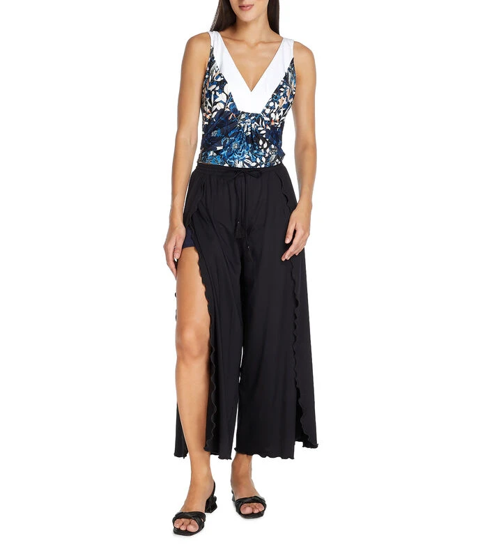 Tankini Barocco en tejido de punto con estampado floral, cuello redondo, tirantes medianos, sin mangas y copas suaves integradas. Bottom con pretina elástica.