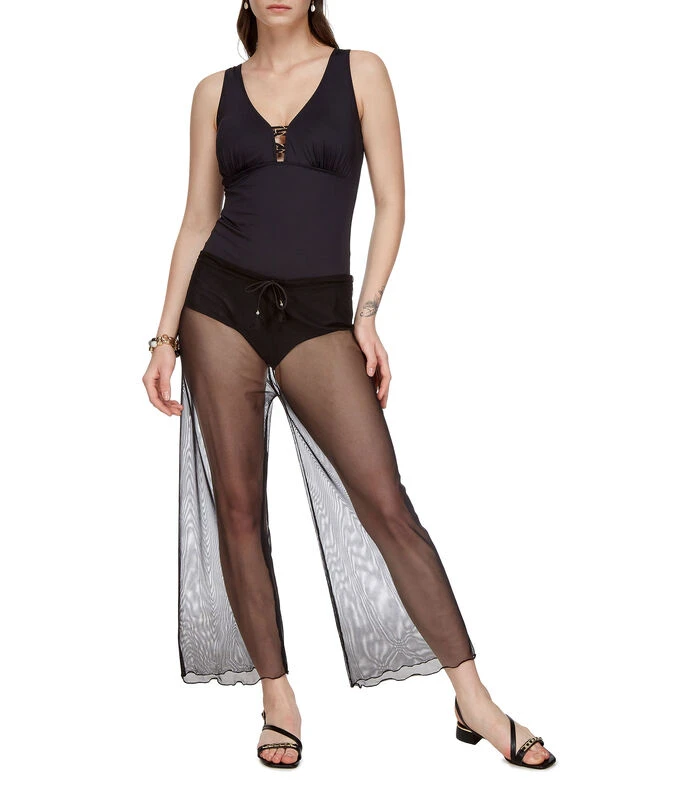 Traje de Baño Barocco Beauty en tejido plano, tirantes anchos y abertura decorativa en escote. Cuenta con 5 beneficios: reduce talla, realza busto, afina cintura, comprime abdomen y moldea glúteos.