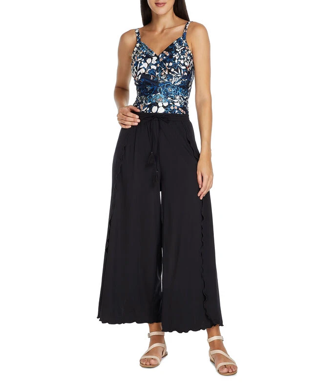 Traje de baño maillot Barocco en tejido de punto con estampado floral, cuello V cruzado, cintas delgadas ajustables, sin mangas y copas suaves integradas.