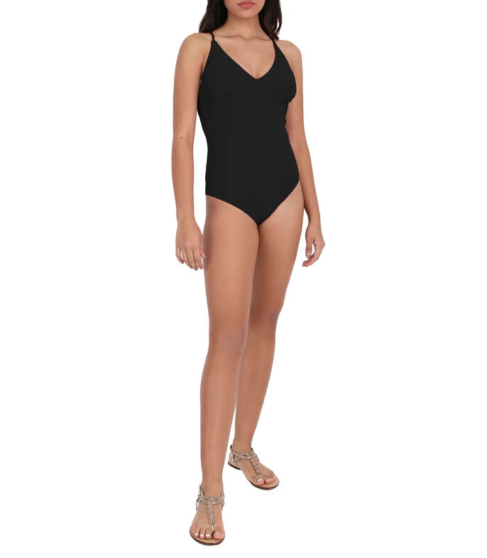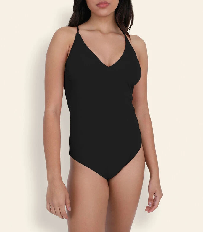 Traje de baño maillot Zingara en tejido de punto, escote V, sin mangas y tiras cruzadas en espalda; Agrega estilo a tu vida diaria.