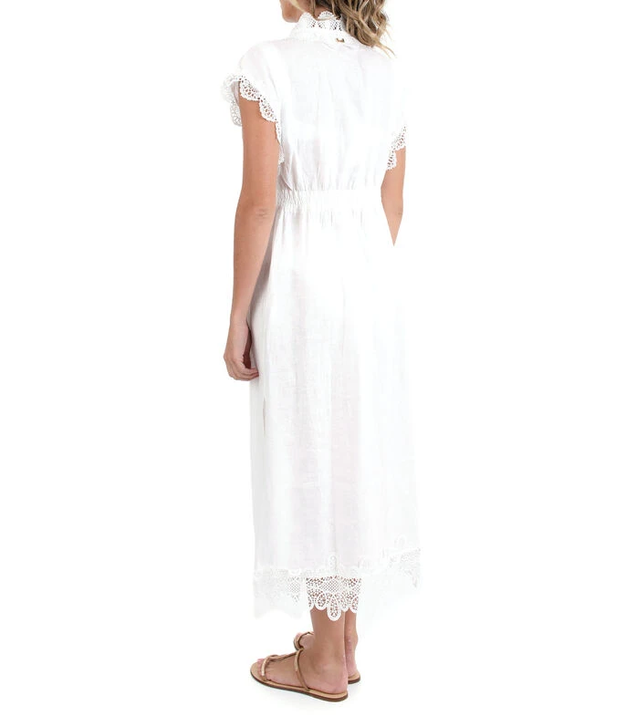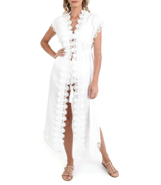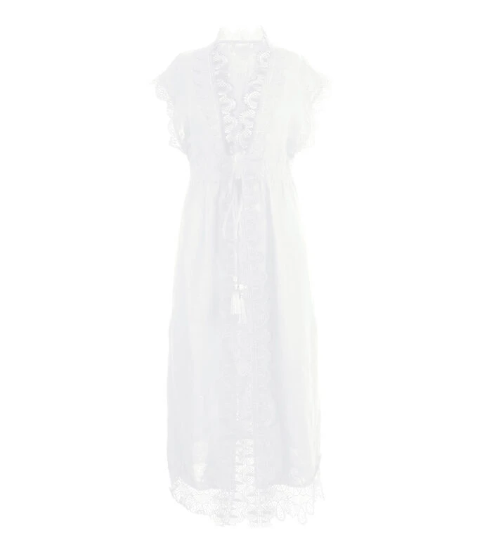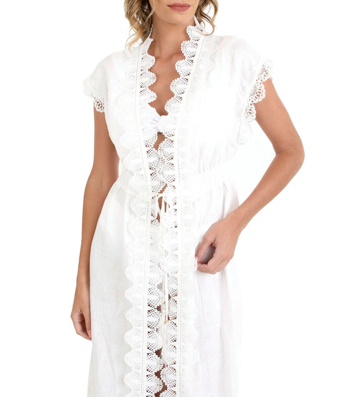 Túnica de playa Zingara Mawii en tejido de punto con encaje en bordes, manga corta y cinta de amarre.