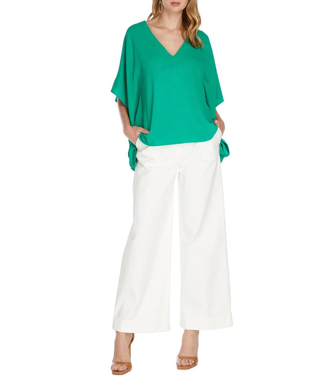 Túnica Octavia en tejido de punto, cuello V y manga corta en caída.