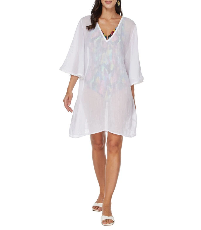 Túnica Barocco para salida de baño en tejido de punto con cuello V y manga 3/4.