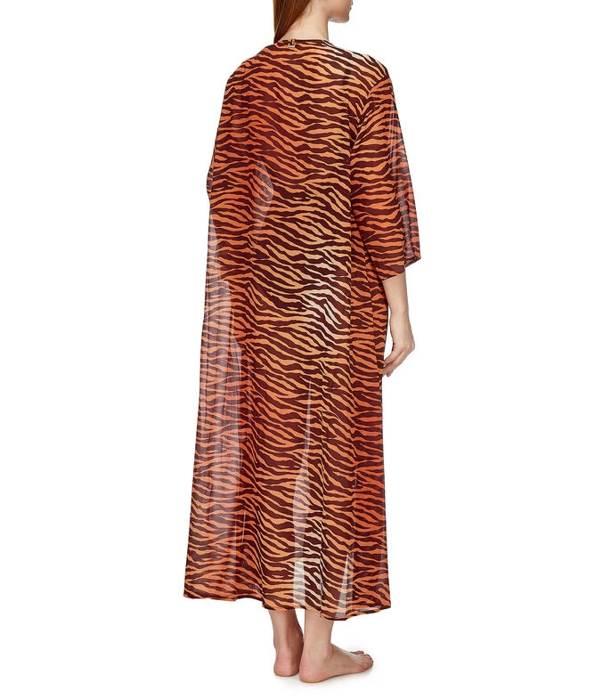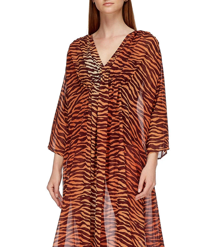 Túnica Zingara Reptilia en tejido plano semitransparente, diseño tipo animal skin y elástico en cintura.