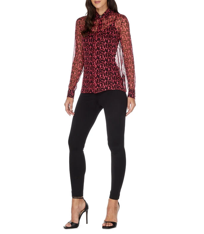 Blusa Versace de corte recto en tejido de punto con monogram, botones a contraste y puño simple.