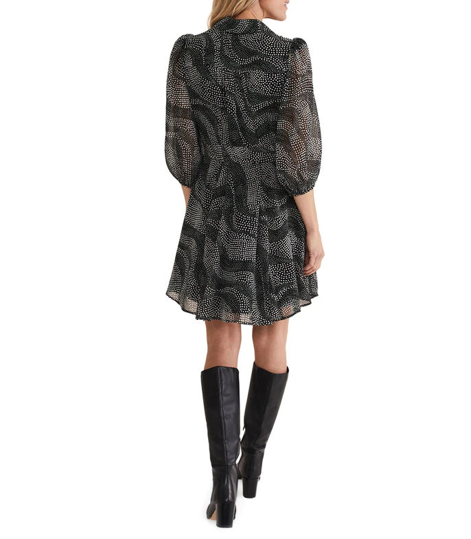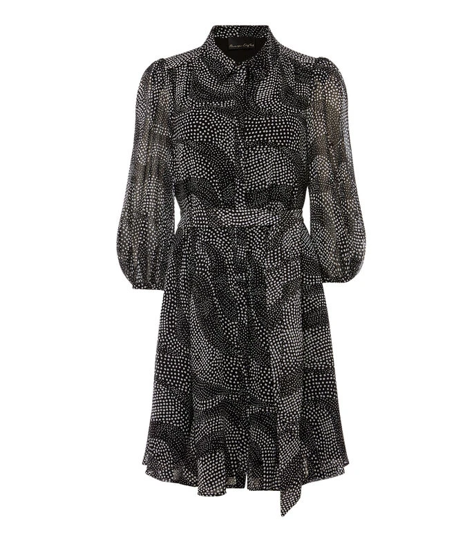 Vestido corto Phase Eight Miriam, corte «A» en tejido de punto, estampado de líneas, media botonadura y cintas para anudar a tono.