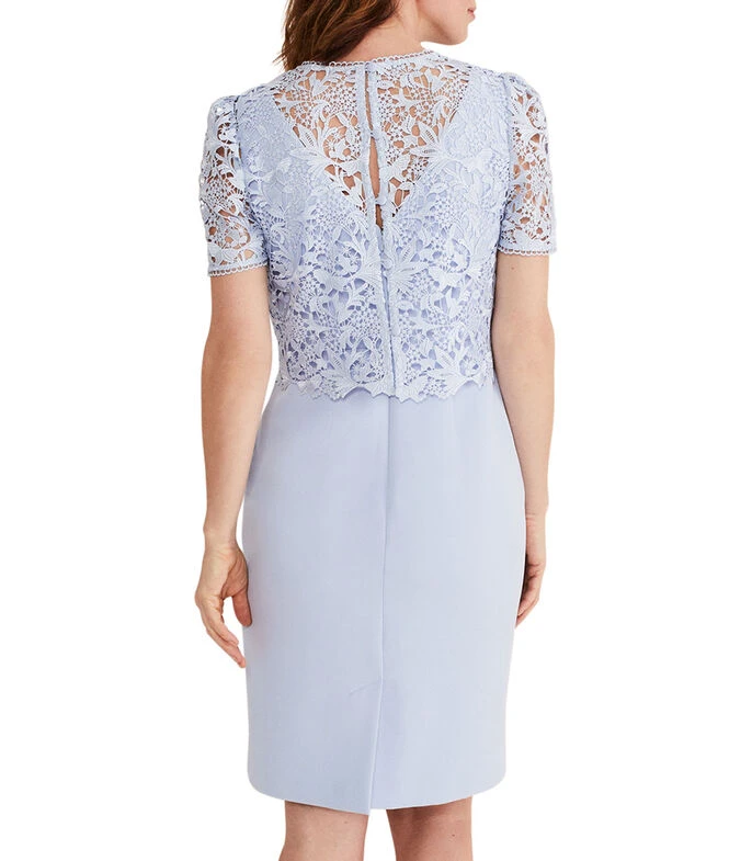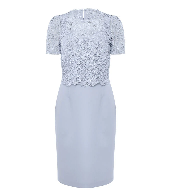 Vestido de fiesta midi Phase Eight Isabella de corte recto en tejido de punto con un corpiño de encaje de manga corta desmontable, diseño floral, cierre de botones, cremallera en espalda y tirantes en interior. Con un corpiño de encaje desmontable, nuestro vestido Isabella es dos hermosos estilos en uno. Perfecto como atuendo para la madre de la novia o el novio.