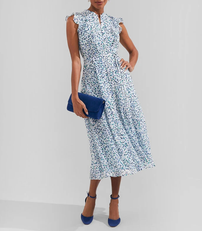 Vestido de fiesta Hobbs midi con lunares Georgiana; Sin esfuerzo elegante y con un atractivo estampado, el vestido Georgiana es el estilo perfecto para bodas, ocasiones especiales y más. Corte regular. La modelo mide 1.75 mts.