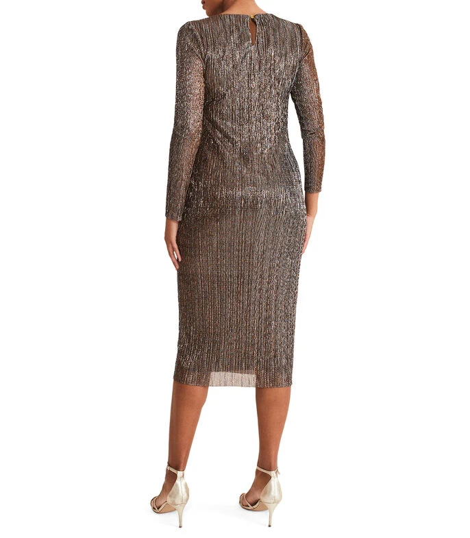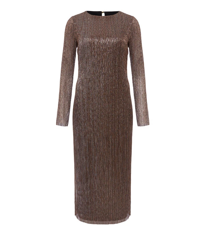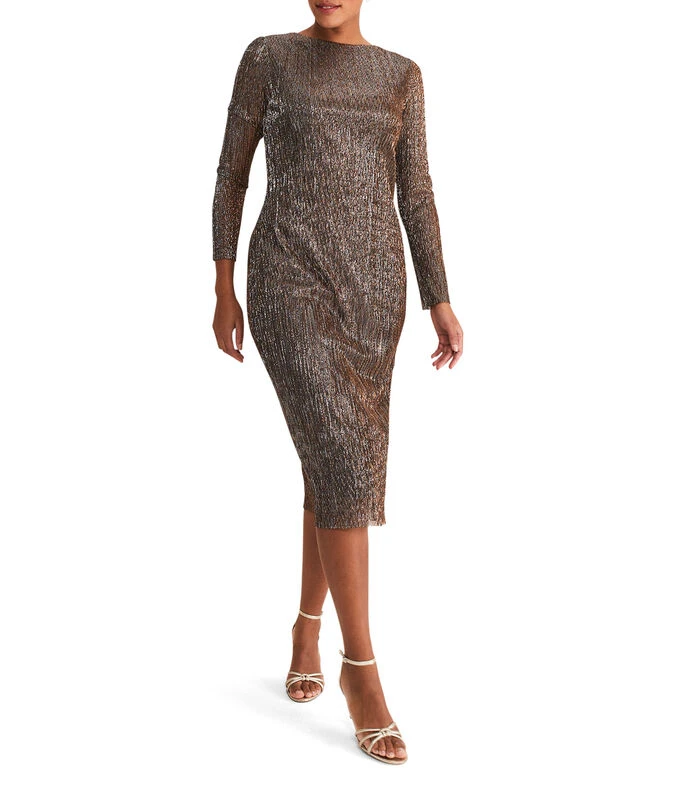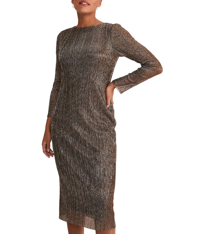 Vestido de fiesta Phase Eight midi de corte ajustado en tejido de punto con diseño jaspeado, cuello redondo, manga larga y cierre en parte posterior.