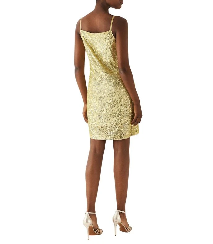 Vestido de fiesta Roberto Verino Mini, de corte recto en tejido de punto con aplicación de lentejuelas, cuello cuadrado sin mangas.