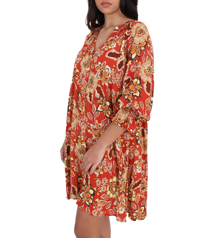 Vestido de playa corto Zingara de corte amplio en tejido plano, estampado floral y botonadura al frente.