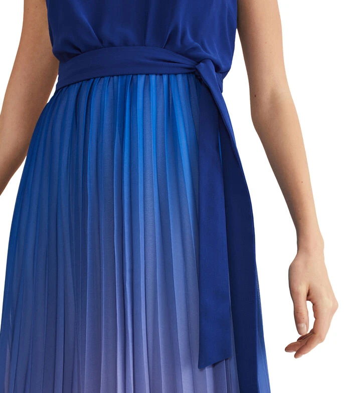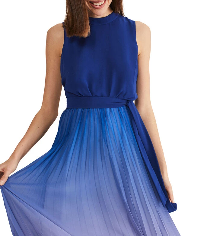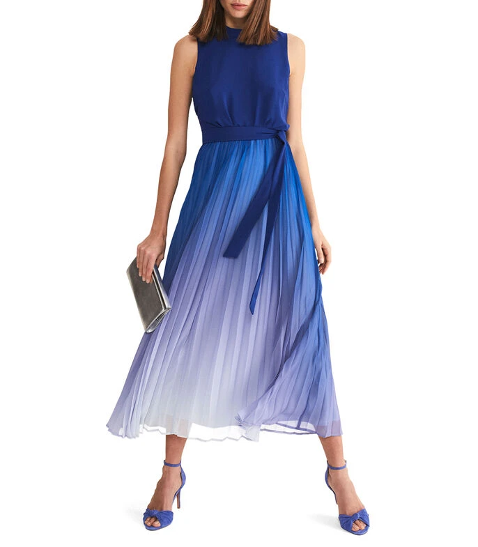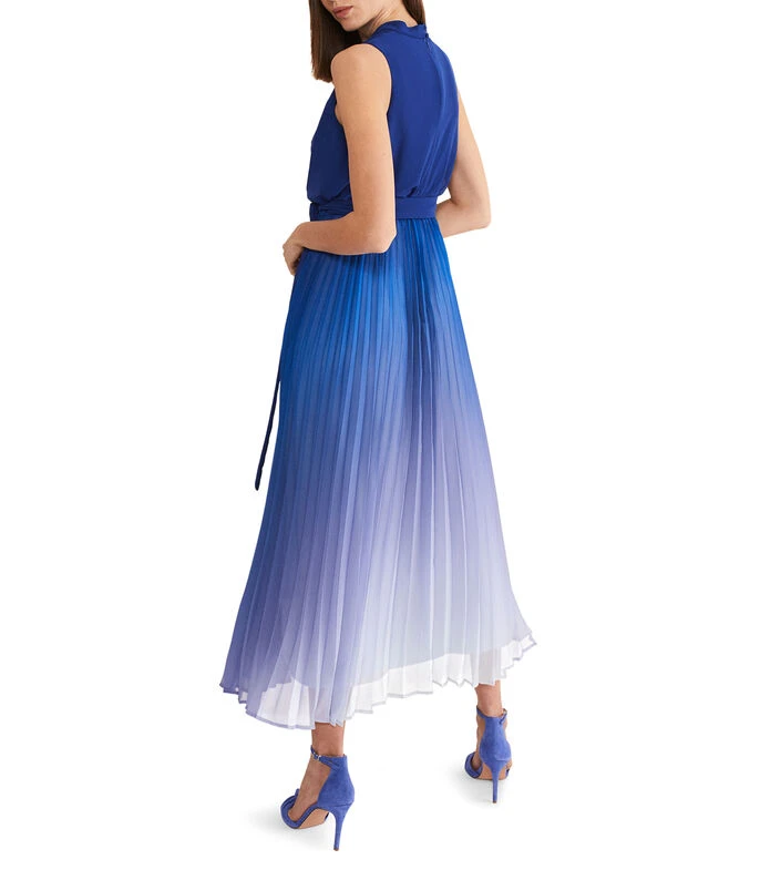 Vestido Phase Eight largo de corte imperio en tejido de punto con diseño desvanecido, cuello redondo, sin mangas y acabado plisado en la falda.