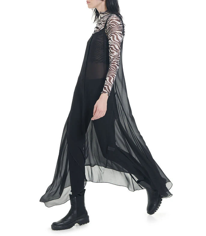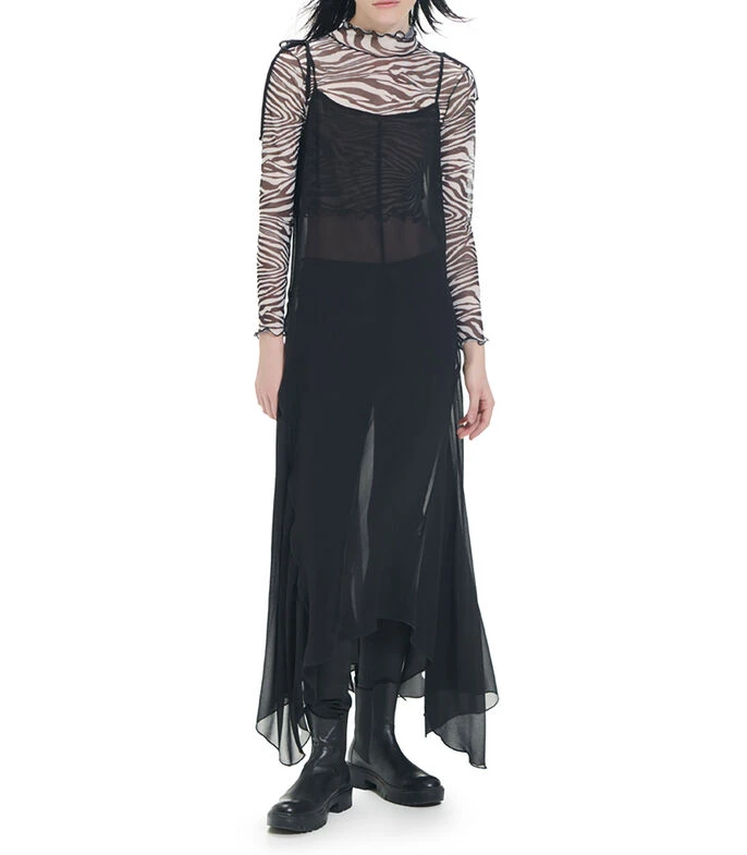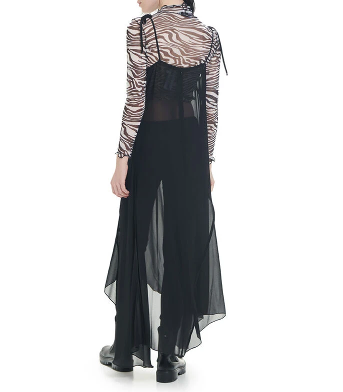 Vestido maxi Unfollow asimétrico, corte amplio con tirantes ajustables de lazo. Ruedo asimétrico. Costuras expuestas. Cierre en espalda.