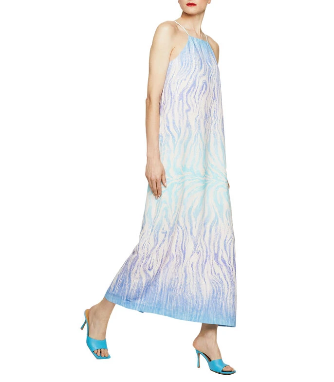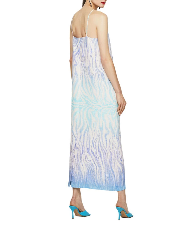 Vestido Mirto maxi de corte recto en tejido de punto con diseño de líneas irregulares y tirantes.