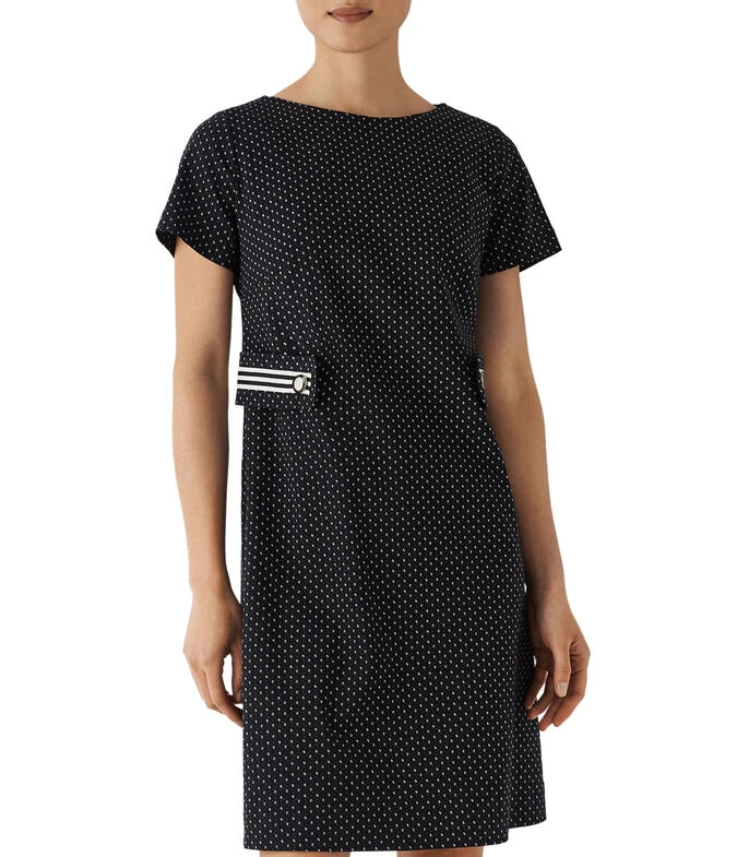 Vestido midi Roberto Verino de corte regular en tejido de punto con full print a contraste, cuello redondo y manga corta.