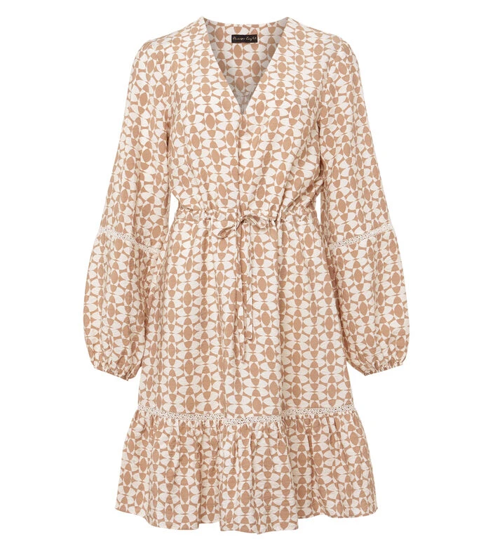 Vestido Phase Eight Midi de corte regular en tejido de punto con estampado monogram, cuello V y manga larga; Un hermoso vestido para usar todo el día. Diseñado con un estampado abstracto marrón, nuestro vestido swing Kesia presenta mangas largas abullonadas, un escote en V femenino y cae a una falda oscilante flotante. Llevaremos este estilo todo el verano.