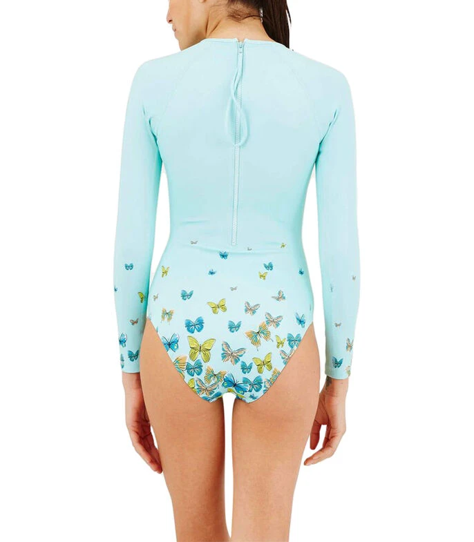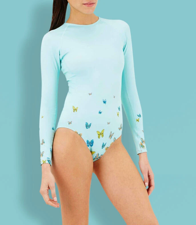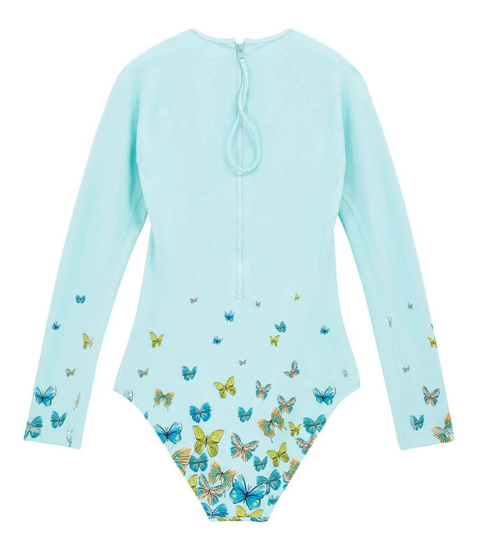 Traje de baño Vilebrequin en tejido de punto con estampado de mariposas en parte inferior, manga larga y cierre sobre espalda.