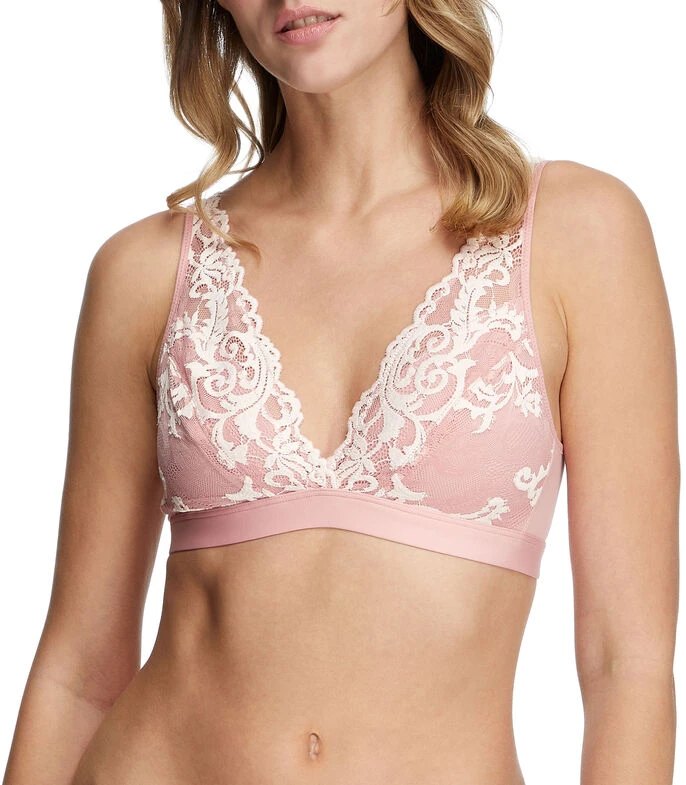 Bralette Wacoal Instant Icon; en tejido plano con detalles tipo encaje al frente, pretina elástica en bajo y broches en espalda.