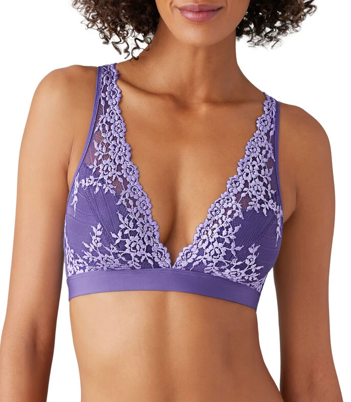 Bralette Wacoal Embrace en tejido plano, diseño de encaje, copa suave, tirantes delgados multi posición; broche ajustable. Este bralette es la representación de elegancia y comodidad. Las copas con costuras, los tirantes convertibles y la banda inferior ancha hacen que este bralette sea tu elección para cada día.