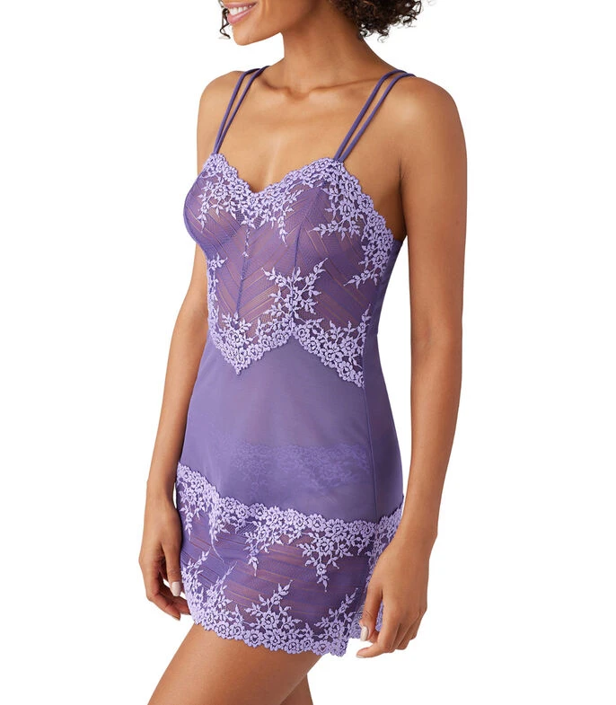 Camisón Wacoal Embrace Lace de corte recto en tejido plano semitransparente, aplicación de bordado floral y tirantes dobles ajustables. Elegante y sexy, nuestro camisón Embrace Lace de Wacoal, es ideal para descansar, dormir y sentirse bien. Resalta las curvas naturales del cuerpo con su lindo diseño.