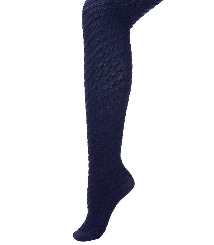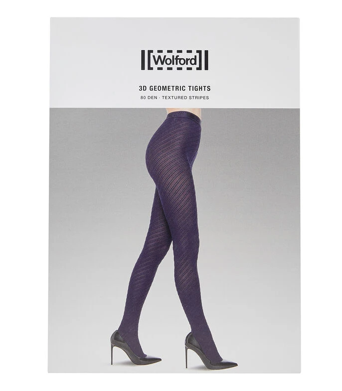 Medias Wolford en tejido de punto color azul con diseño decorativo de formas geométricas y borde superior con nombre de la marca.