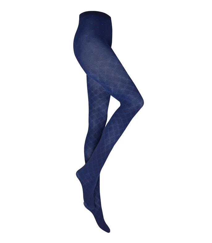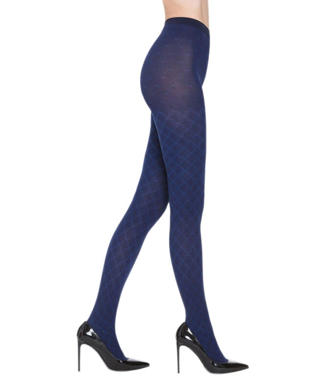 Medias Wolford geométricas azules; Un divertido patrón de puntos alrededor de las caderas da paso a sofisticados diamantes geométricos en las piernas de estas medias de mezcla de algodón. La pretina tejida garantiza un ajuste seguro. Diseño geométrico. Denier: 90 DEN.