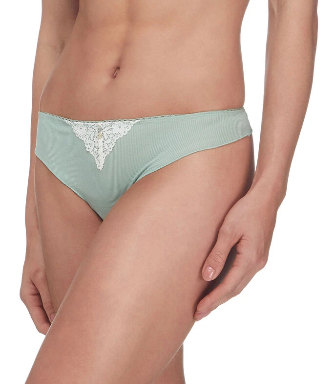 Bikini Women’Secret en tejido de punto con diseño liso, acabado acanalado, adorno de encaje y pretina elástica. Un compañero ideal para tu día a día.