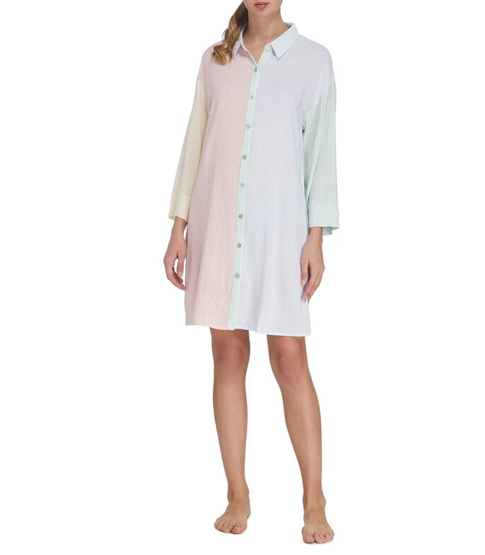 Camisón Women’Secret de corte recto en tejido de punto con diseño de rayas y botones a contraste.