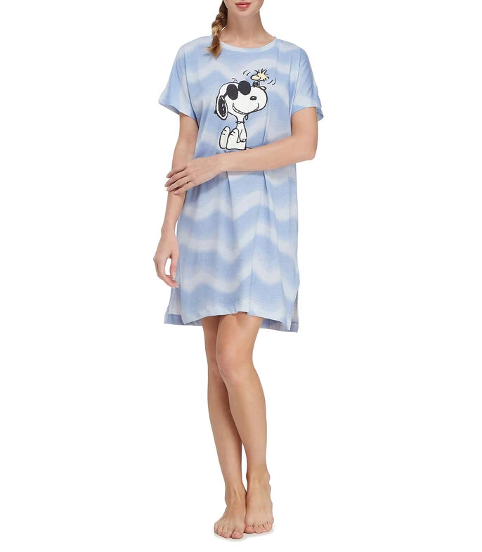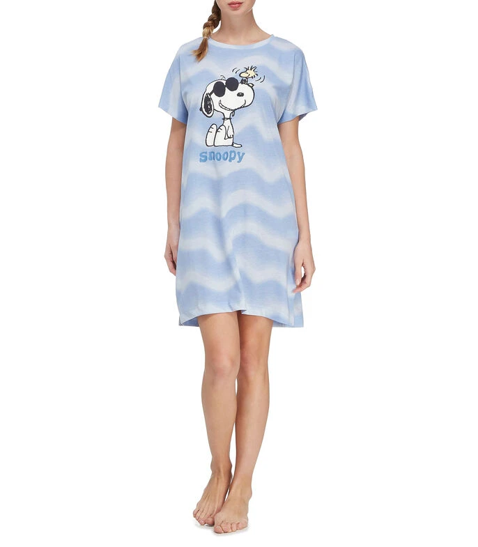 Camisón Women’Secret de corte regular en tejido de punto con diseño alusivo a Peanuts estampado a contraste, cuello redondo y manga corta.