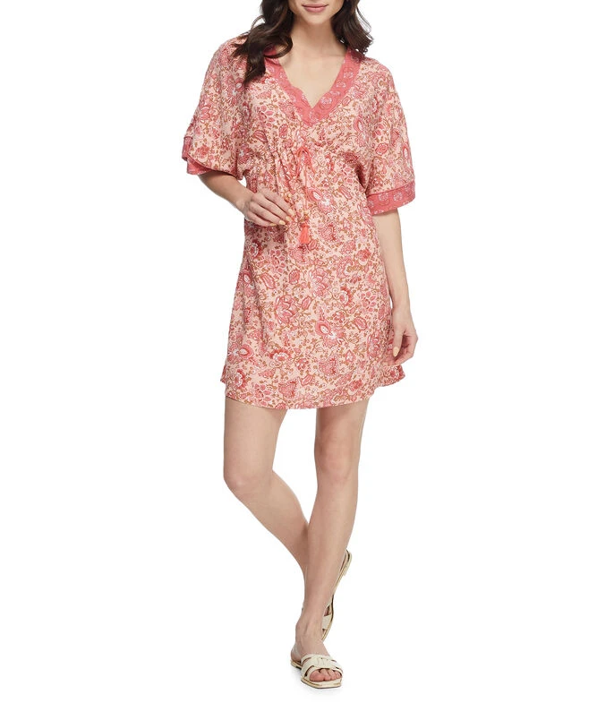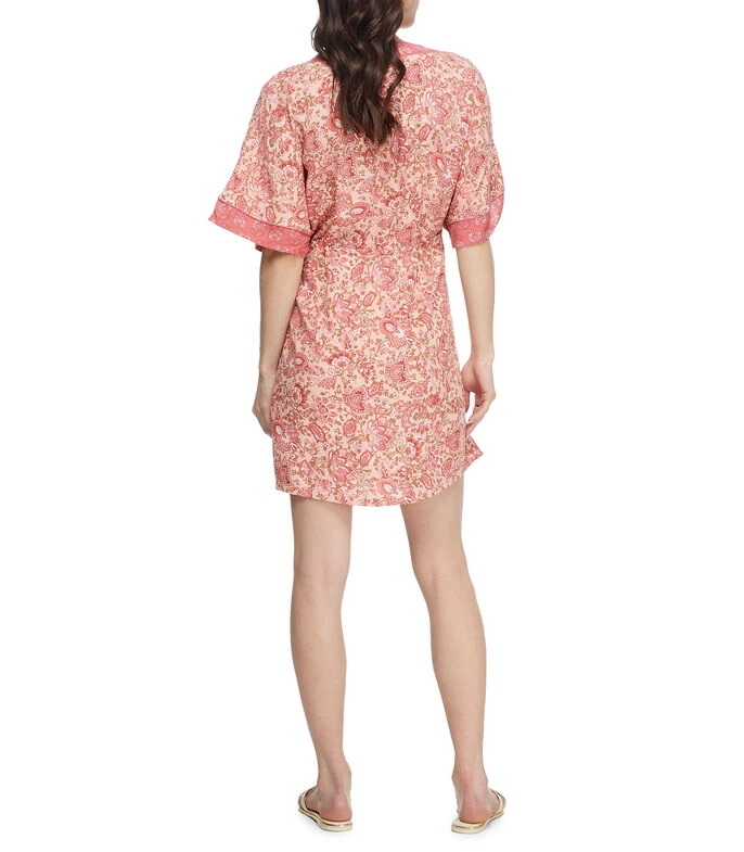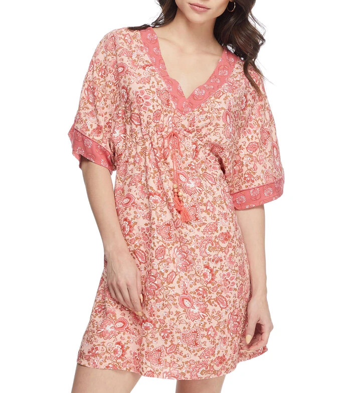 Camisón Pijama Women’Secret de corte recto en tejido de punto, cuello «V» con cinta para anudar, manga 3/4 y estampado floral multicolor.