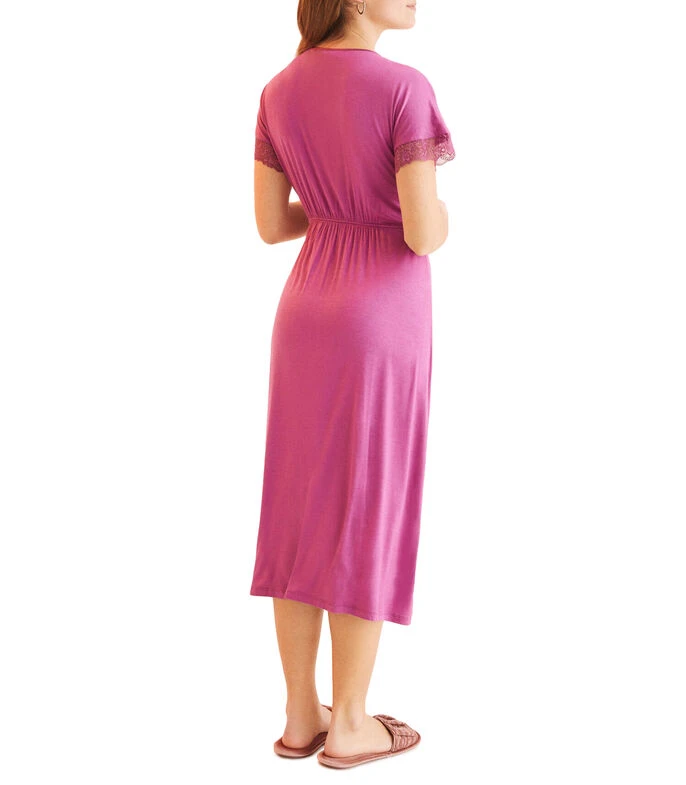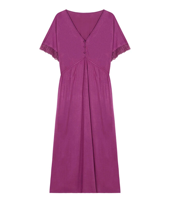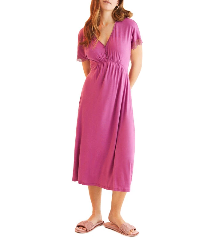 Camisón Women’Secret Soft de corte recto; en tejido de punto liso con escote V, manga corta acompañada de encaje en el borde, botonadura a tono y pliegues que parte desde al cintura. Una pieza de noche cómoda a la par que elegante ¡Te encantará!