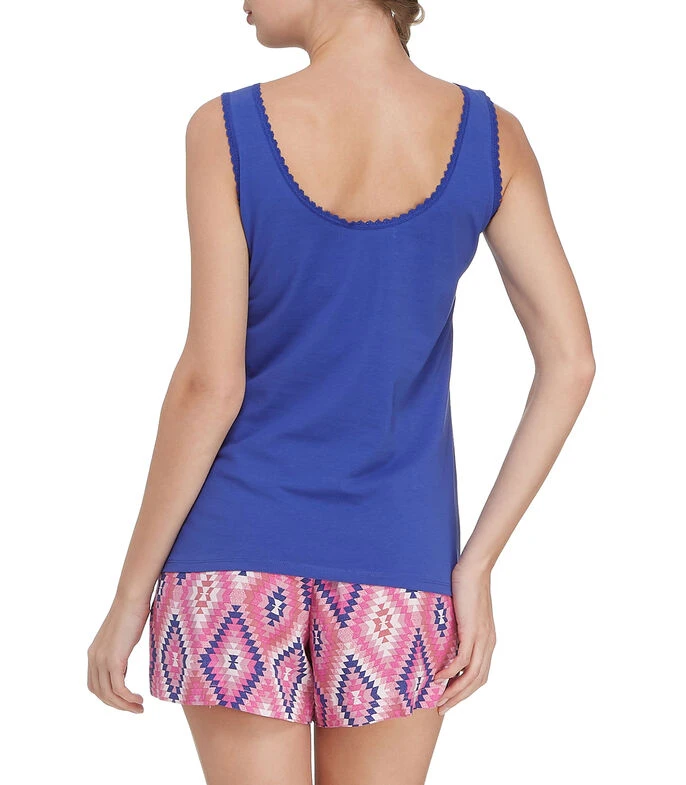 Playera Pijama Women’Secret de corte recto en tejido de punto con diseño liso, cuello redondo, sin mangas y encaje en los bordes.