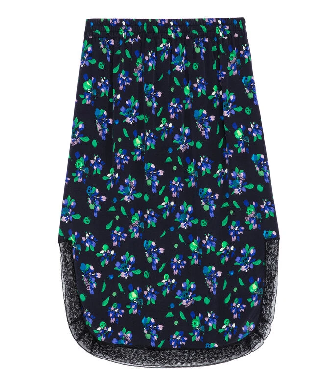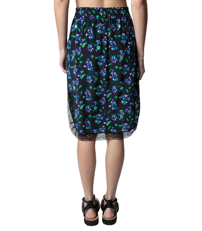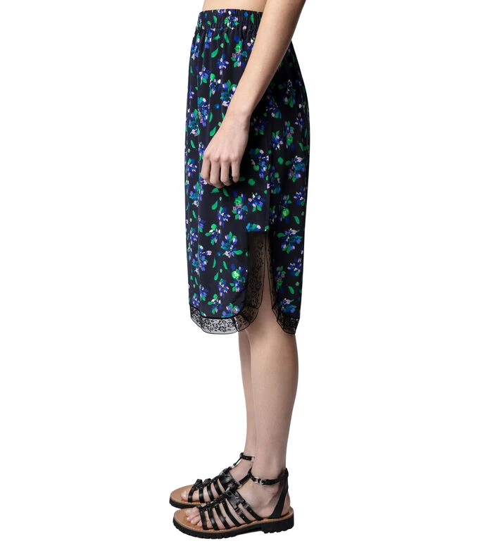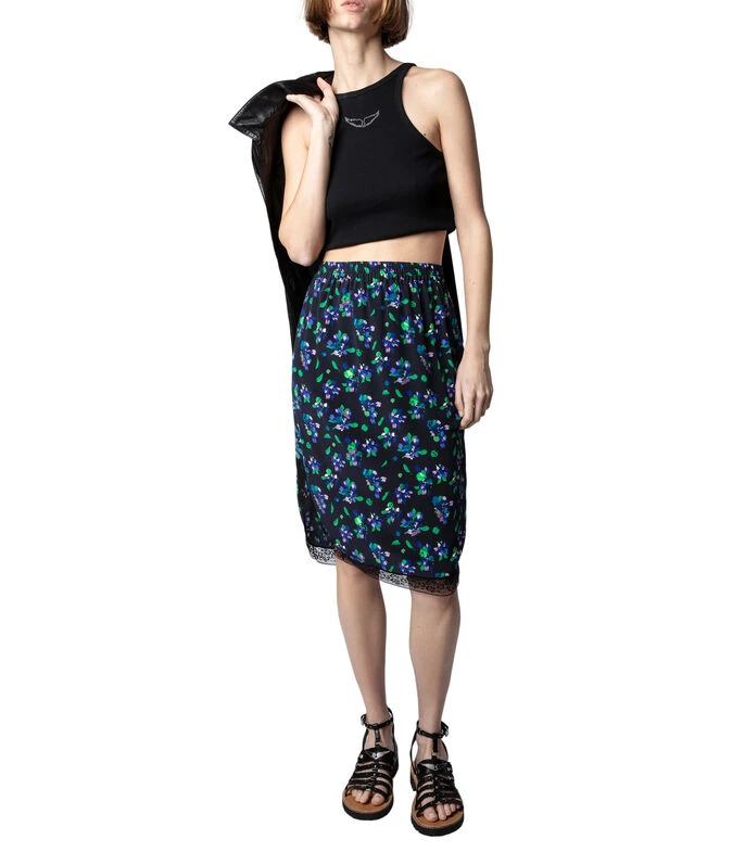 Falda Midi Zadig & Voltaire de corte recto en tejido de punto con estampado de flores, pretina elástica, detalle decorativo en bordes y abertura en costados.